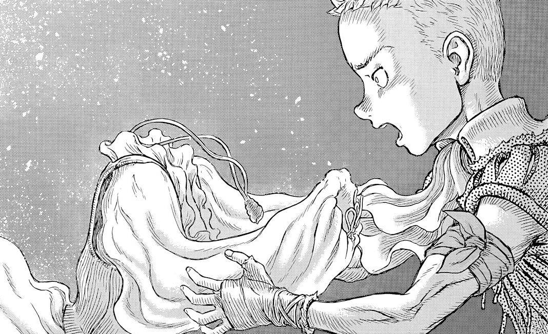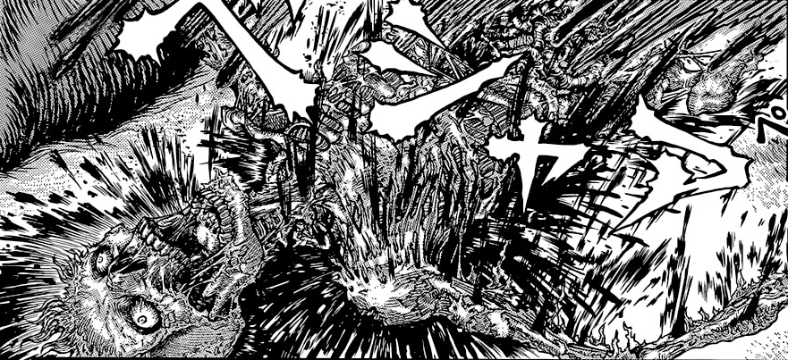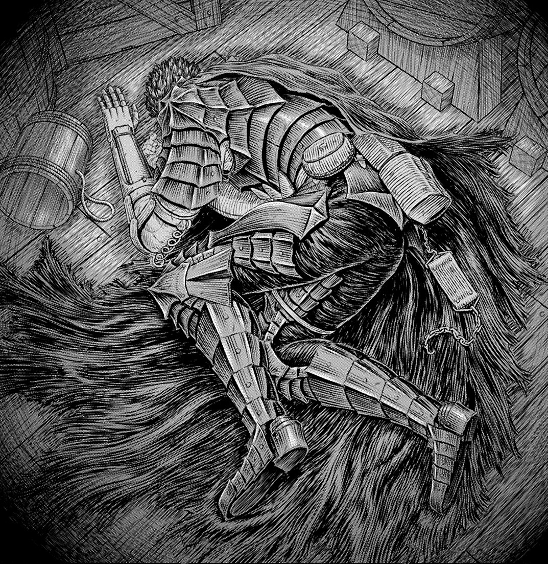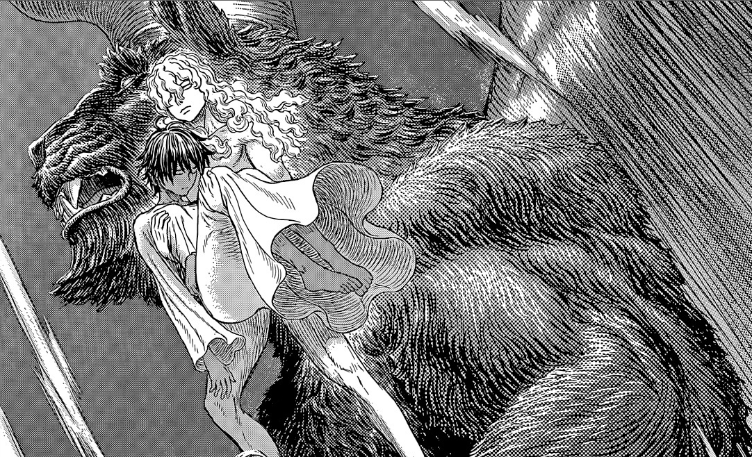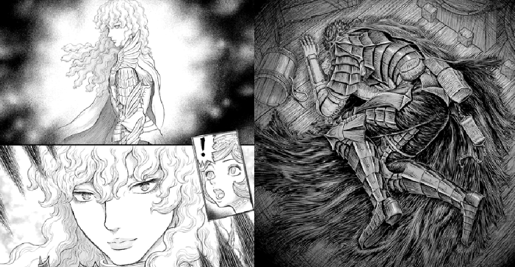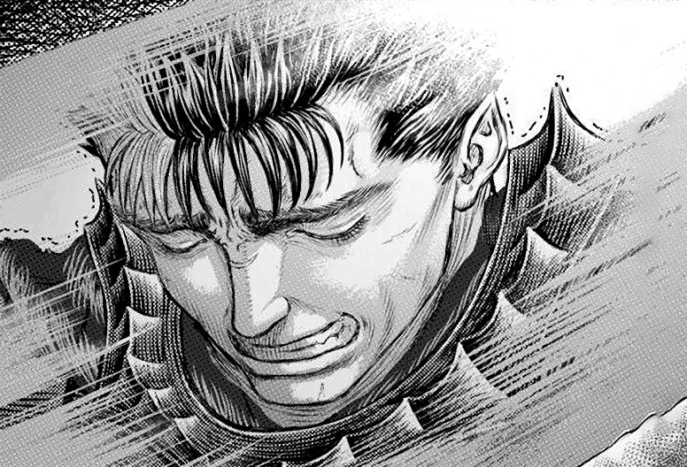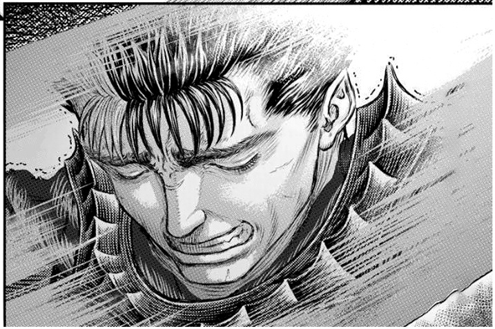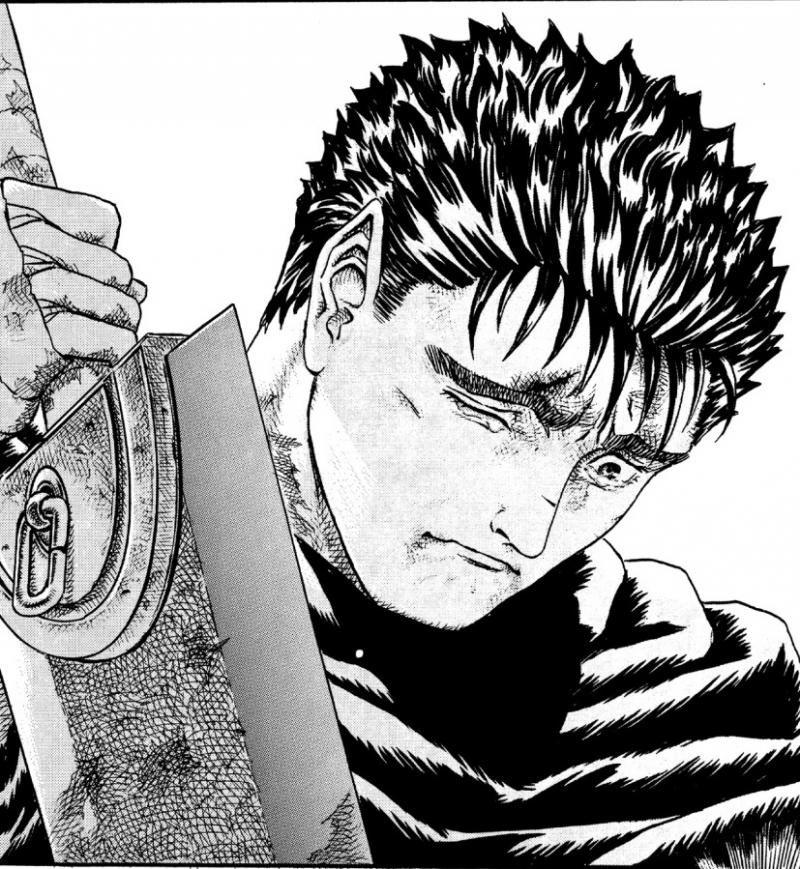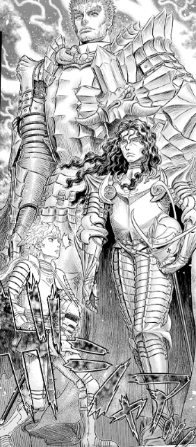 صعب ان غاتس مؤمن بالتدريب و سيفه طول حياته و يجيه احباط من ان كل شي راح هباء موقف صعب لما يكون ما بيده شي الا سيفه و ما يقدر حتى يجرح غريفث اعطوا غريفث فوق حقه صراحه من قوه و هيامه زايده الحين مسار المانجا الى فالكونيا
