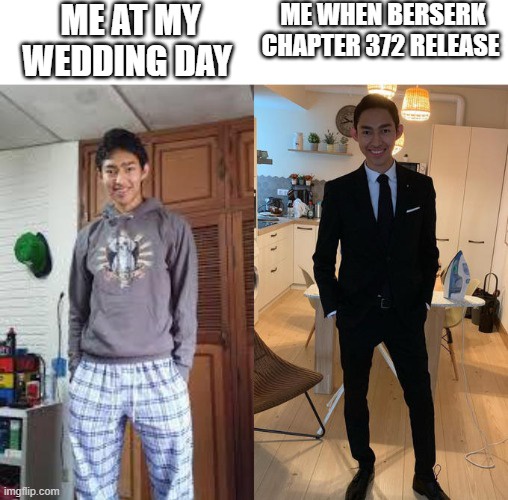 كان من البداية واضح فارق القوة بين قاتس وغريفيث واتوقع قاتس بيتخلى عن انسانيته بطريقه ولا بثانيه مقابل القوة حاليا بس مالي الا اربع ايام من بديت اتابع المانجا واشوفها ماتت مع مؤلفها العظيم بس مستغرب ليه الفصول تطول مره