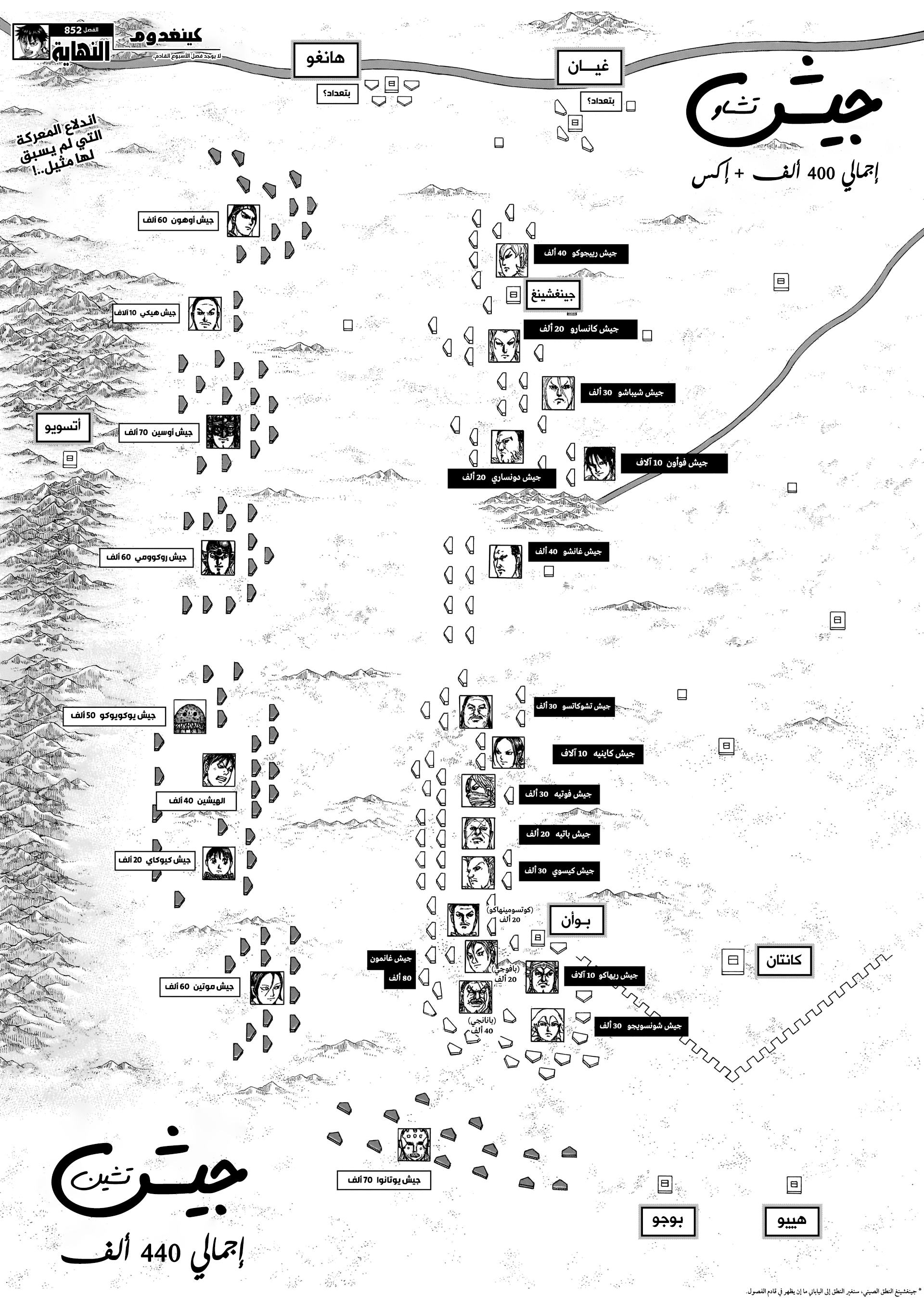 تسليك من هارا. من أين لتشاو 400 ألف؟؟؟ شين قامت بالتجنيد و استعمال جيش هان حتى وصلت هذا العدد. فوتيه كان قائد 10 الاف فأصبح قائد 30 ألف. يوتانوا بجيشها و جيش الذئاب ريويو كلهم 70 ألف