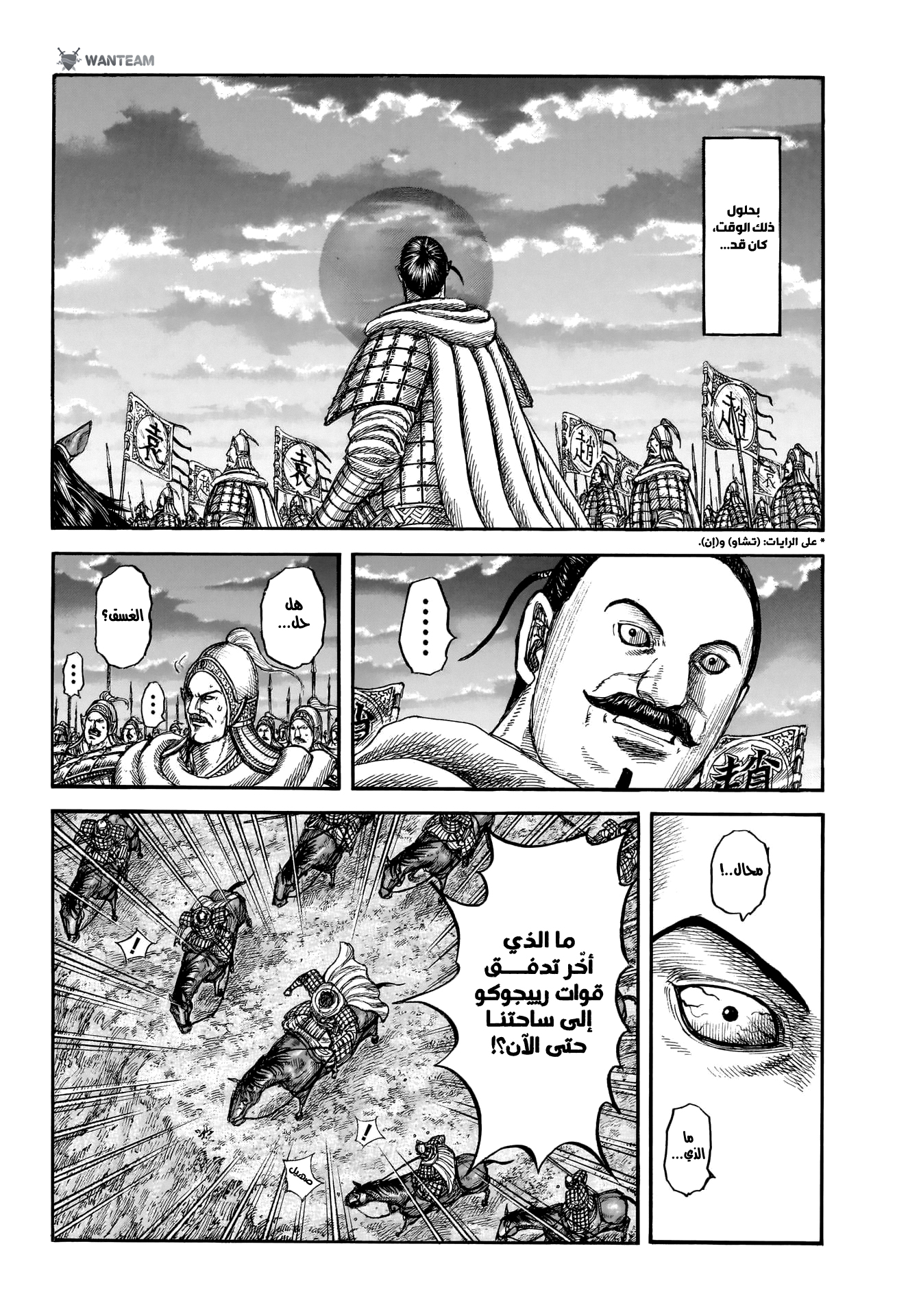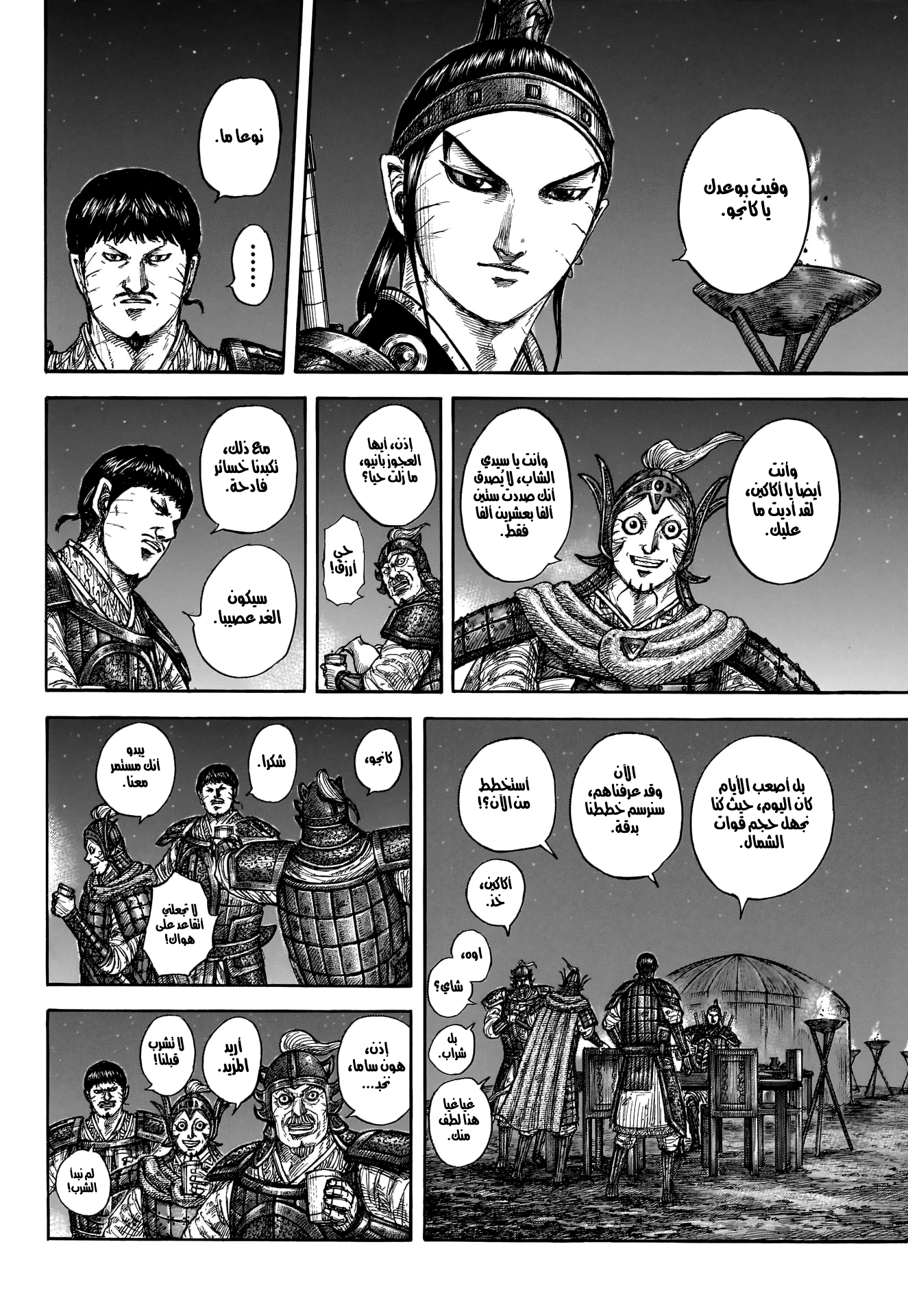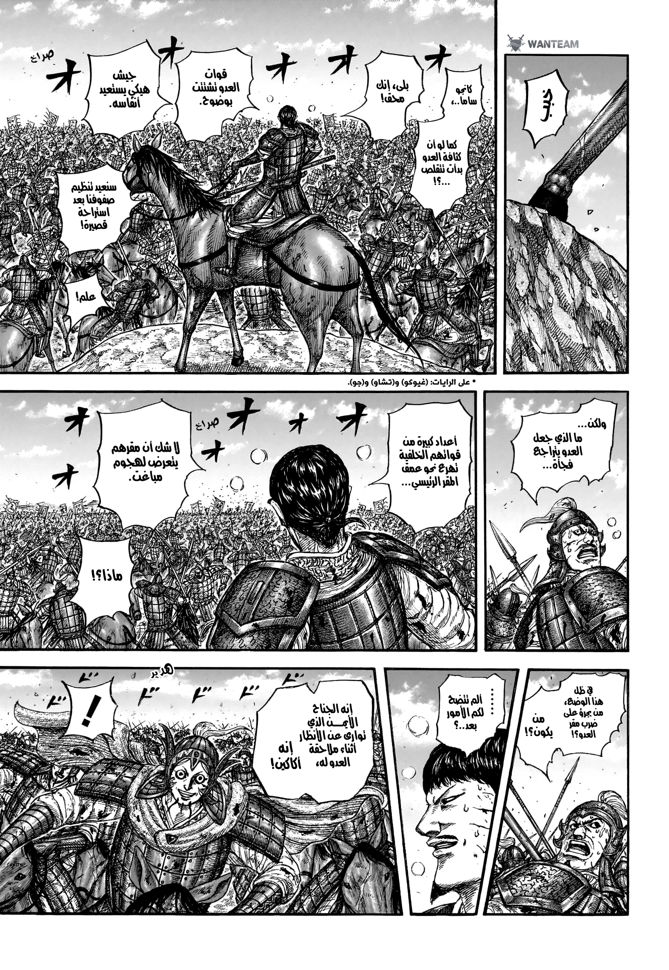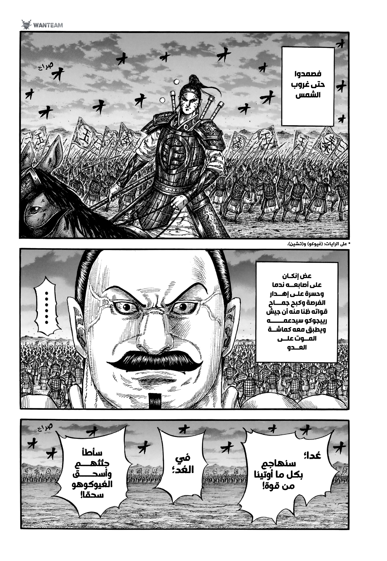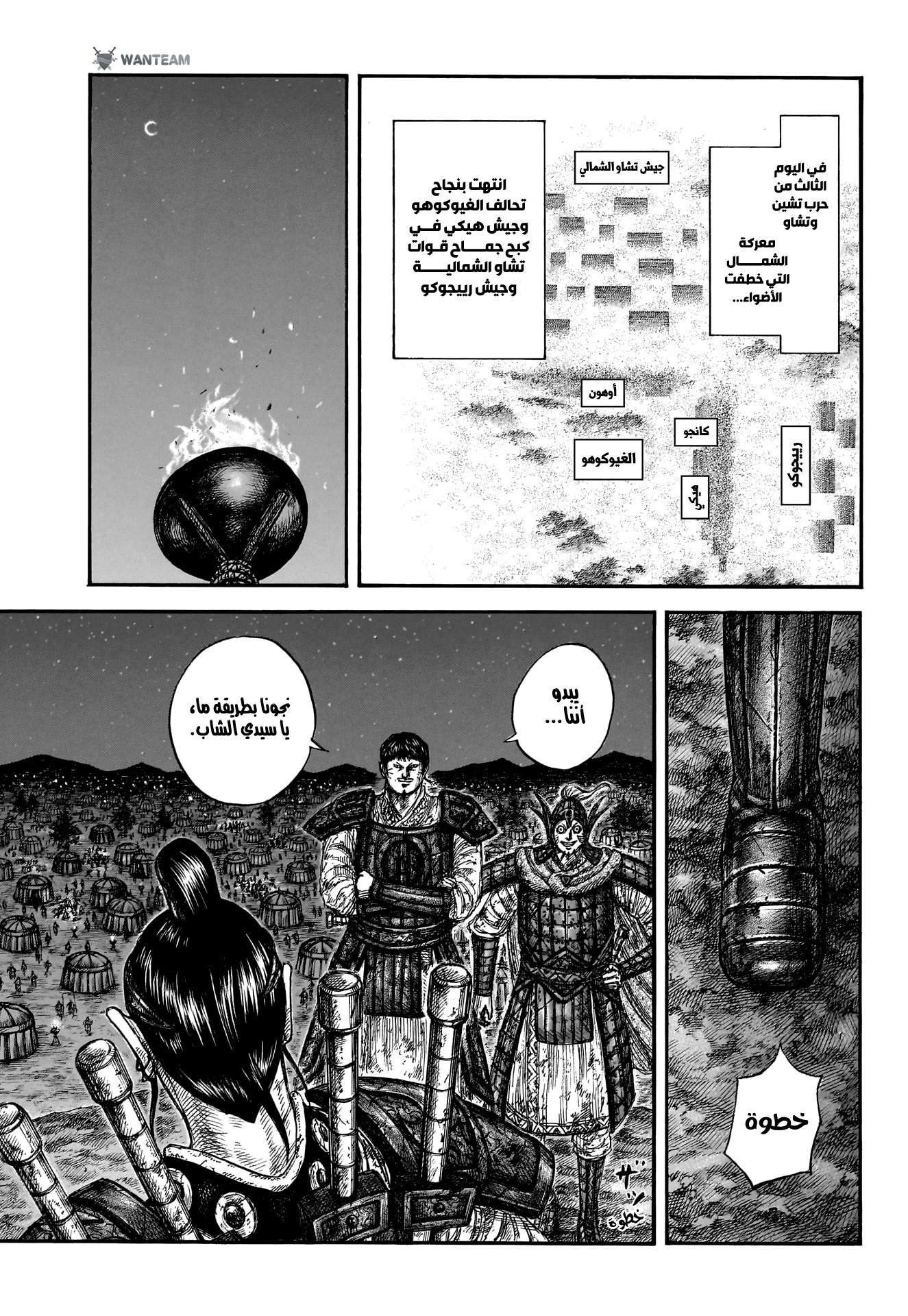 اوهون صارله يومين ثلاثة يقاتل بس بنص تعداده ضد هذا الجنرال الي يقاتل كانجو حاليا وعايف النص الايسر كجدار لان ما كان يعرف توقيت او عدد جيش الشمال الي يتدخل ارجع عالفصول السابقة ومحادثته ويا كانجو فاكيد عنده خسائر وذكروا اكاكين بالذات فقد نص جنوده ال١٠ الاف